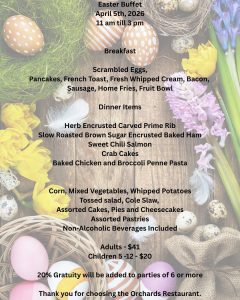 Come Enjoy Your Easter At the Orchards Restaurant!!